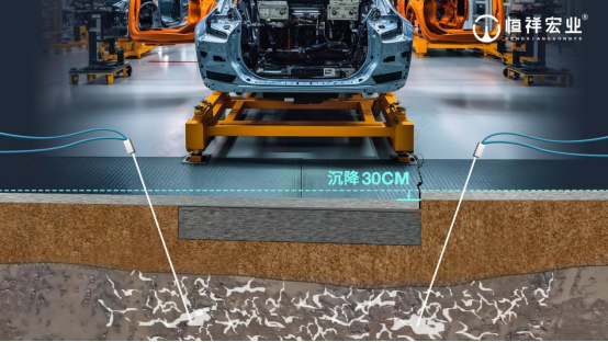 恒祥宏业工程师经研讨,针对焊装车间地坪加固抬升调平为主的需求,以无损可控土体固化技术为核心,制定了地基稳固与地坪抬升调平方案。